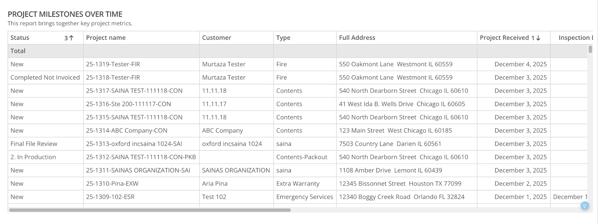 If your organization has not set up Common Dates in Project Settings, several reports may show incomplete or missing information.