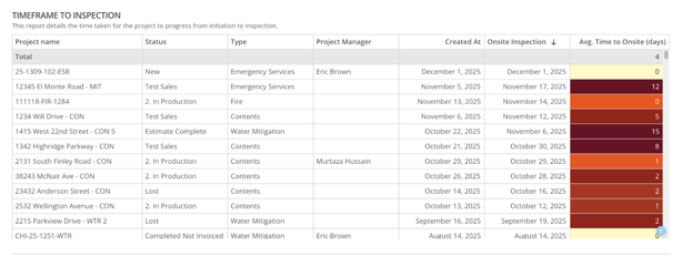 The average amount of time between when an inspection starts and when work begins. - Completed: