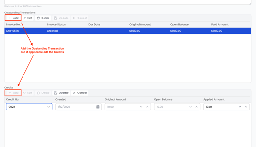 If a credit is entered, it is not applied to the invoice right away. Instead:
