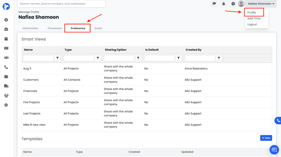 These options ensure you can use templates wherever you communicate in Albi —whether following up on a project, logging activity notes, or sending organization -related updates.