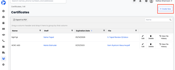 This will open the Certificates Dashboard, where you can view, manage, and organize all certificates linked to your staff.