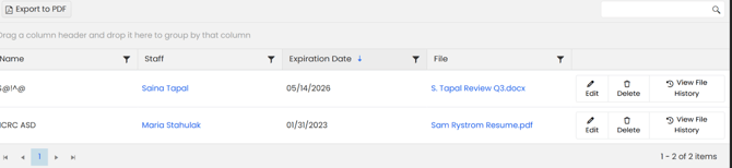 - To delete a certificate, click the Delete button next to the record.This will permanently remove the certificate from the staff profile.