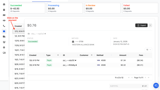 - This will open the Payments Dashboard, where all payment activity is displayed.