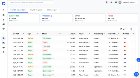 The first tab you see is CC / ACH Transactions, which contains every payment processed through Albi.