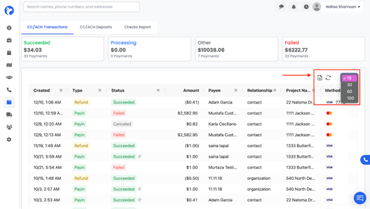 Refresh: Click the refresh icon to update the page with the latest payments.