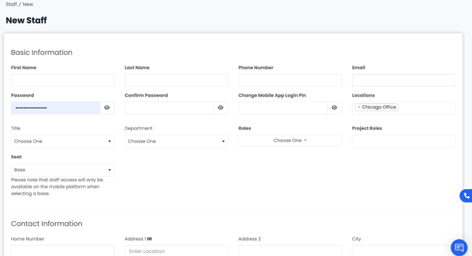 3. A Staff Information form will appear, where you can enter details for your new staff member.