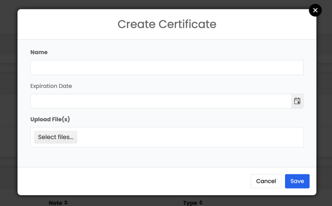 - Enter the certificate name and expiration date.