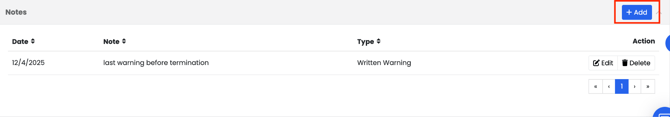 Used to record staff-related notes such as verbal warnings, written warnings, suspensions, or terminations.