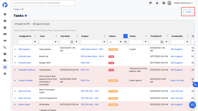 - On the Tasks Dashboard, click the Create New button in the top-right corner.