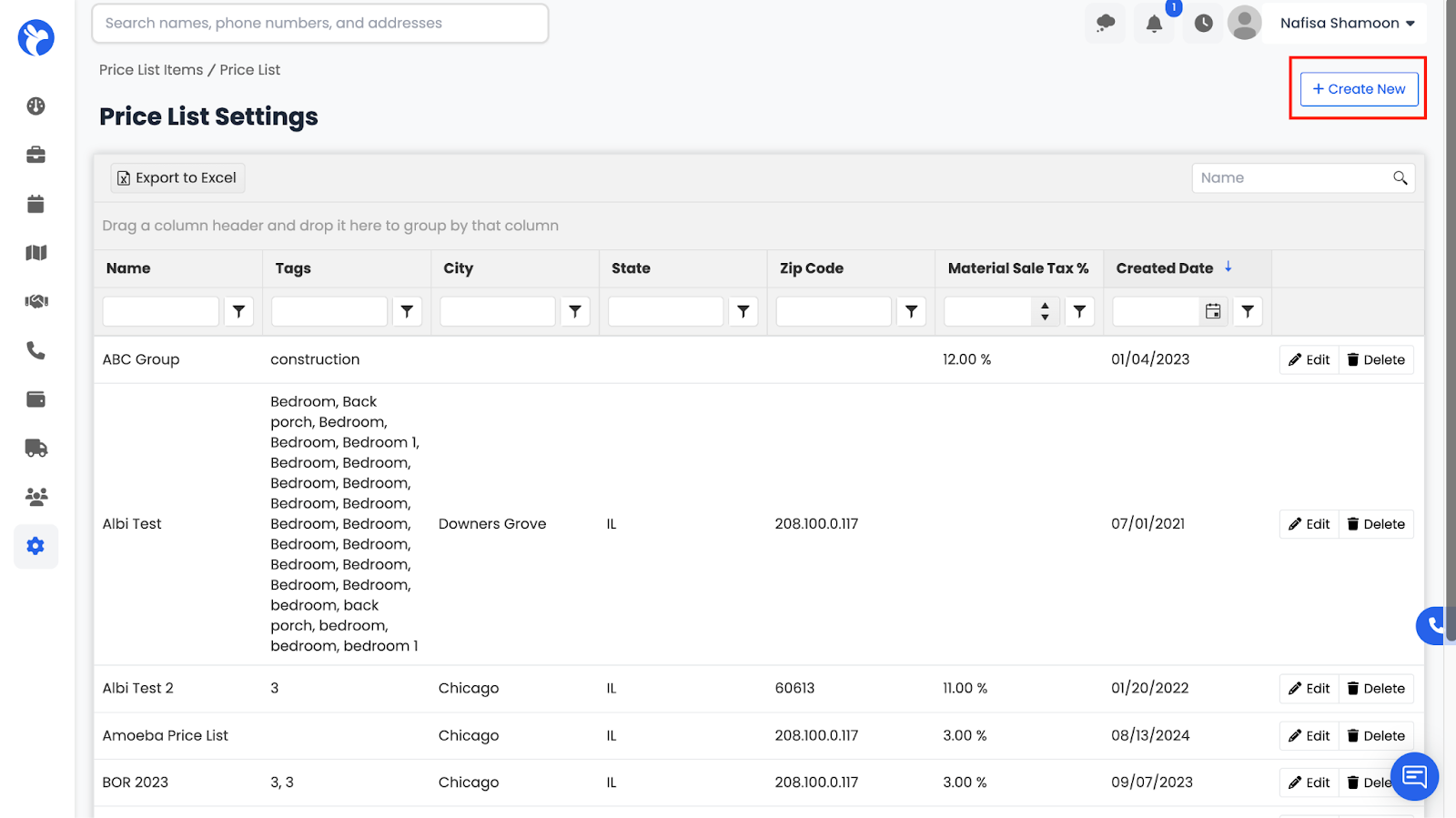 Your new Price List will now appear in the system.