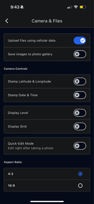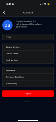 The Profile & Settings section in the mobile app allows you to manage your personal information, app preferences, camera behavior, email connections, and account details.