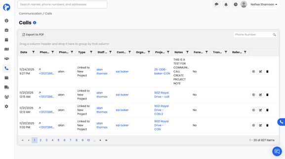 The Communications → Calls dashboard provides a complete log of all incoming and outgoing calls made through your Albi phone system. This dashboard helps teams track communication history, monitor call activity, access call recordings, and manage phone numbers connected to their company.