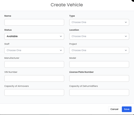 Once all the necessary information is entered, click Save to add the new vehicle to your list. It will now appear in the Vehicles Dashboard, where it can be tracked, managed, and assigned to projects.