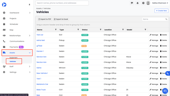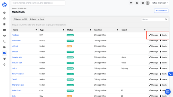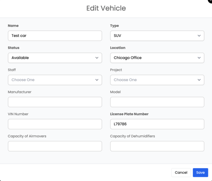 Managing vehicles allows you to easily update details such as status, location, type, and model keeping your records accurate and up to date.