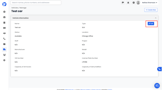 2. On the right-hand side of the vehicle card, click the Edit button.