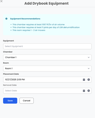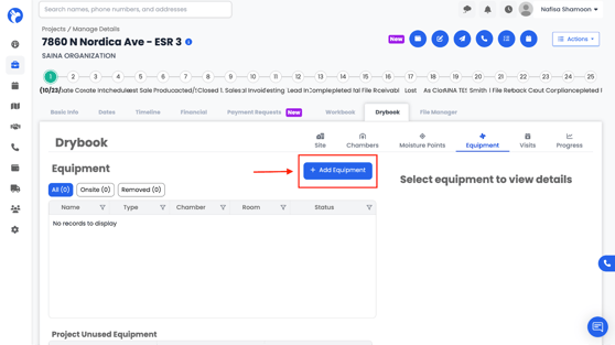 📘Note: To add equipment through DryBook, you must first create the DryBook for the project.