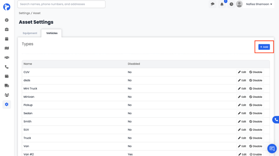 - Go to Settings from the main menu, then click on the Assets tab and select Vehicles.