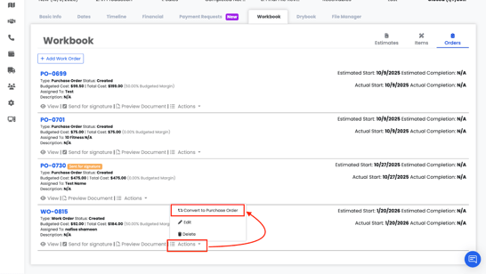 3. Select Convert to Purchase Order