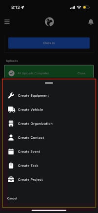 When you tap this button, a menu opens showing all the different items you can create.