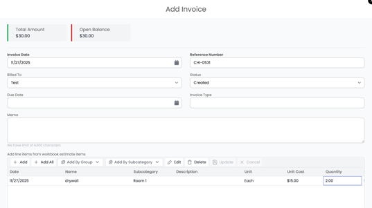 Invoices represent the charges billed to the customer for labor, materials, equipment, services, and other project-related costs.
