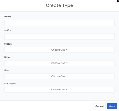 Note: If statuses, dates, files, or other settings are not configured under a project Type, they will not appear on the project itself.