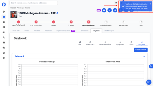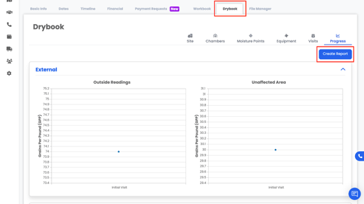 The Progress tab is where you generate drying reports based on the data entered in DryBook.