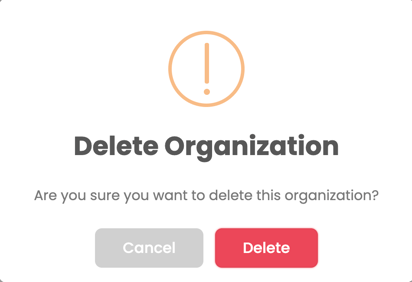 2. A pop-up will appear asking you to confirm the deletion of that organization. Click the Delete button to confirm and delete the organization.