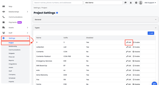 Open the specific Project Type used by the project by clicking Edit
