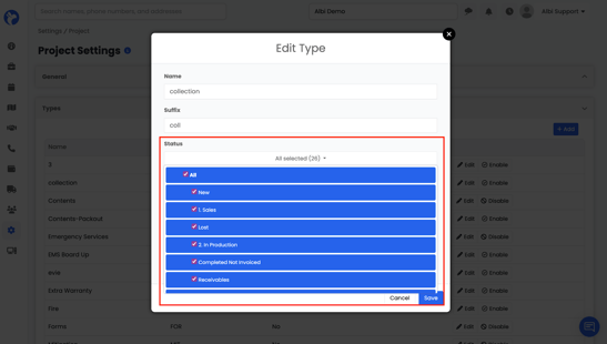 📝 Note: Status availability is controlled at the Project Type level, not per individual project.