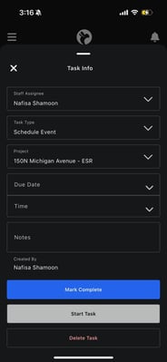 - Tap Start Task to mark it in progress