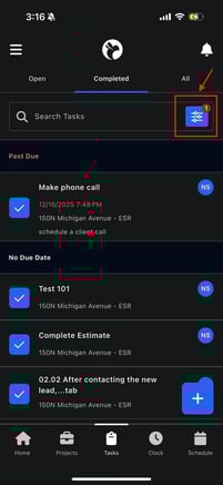 - Tap the checkmark icon (✓) on a task