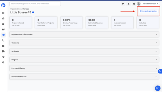 The Merge Organizations feature lets you combine two organizations into one. This is helpful if you accidentally created duplicates or if two records need to be joined together.