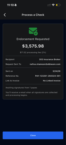 - Processing begins after all payees sign