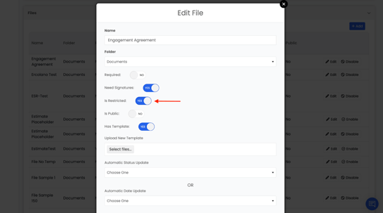 - Toggle Restricted ON to restrict the file, or OFF to make it unrestricted