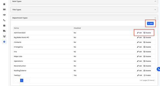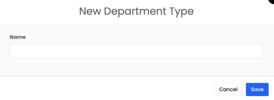 Click the Add (+) button in the top-right corner to create a new department type. Enter the department name and save.