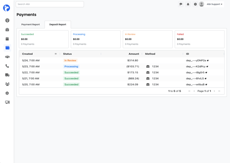 Learn how to track payments and deposits in Albi Pay