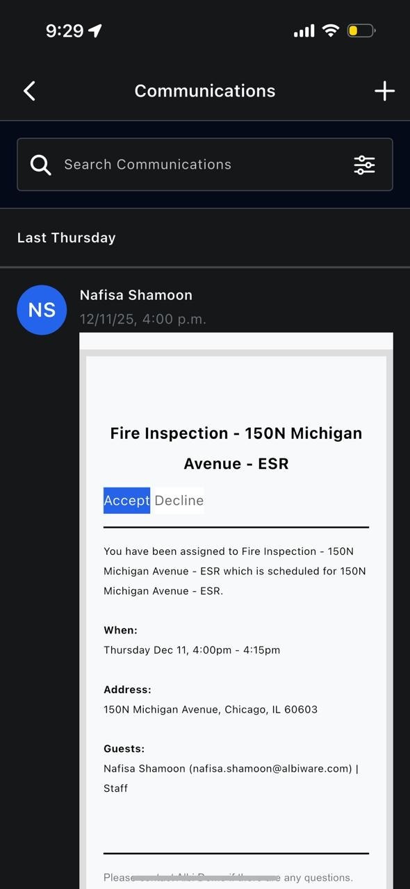 Learn how to use the Communications section within a project in the Albi mobile app to manage emails and messages.