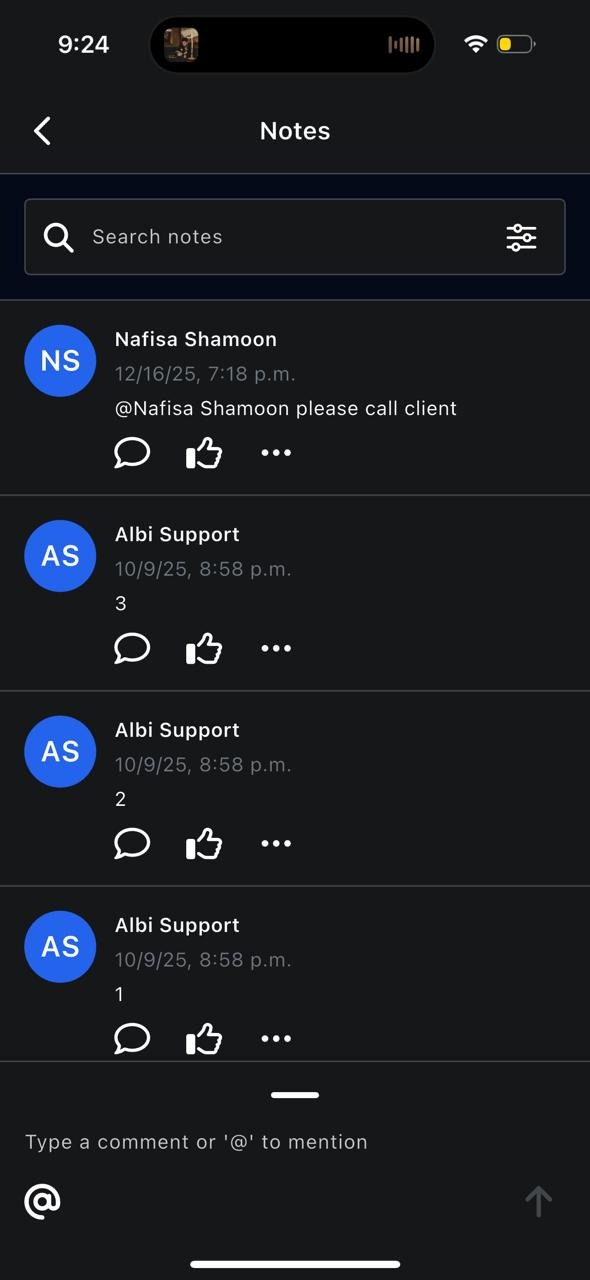 Learn how to add, view, and manage notes within a project in the Albi mobile app to document important details and instructions.