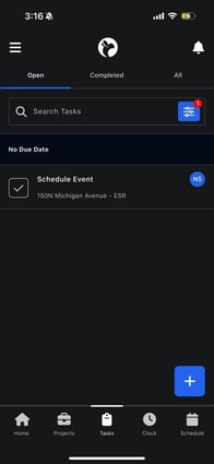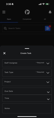 You can access Tasks at any time by tapping the Tasks icon in the bottom navigation bar of the mobile app.