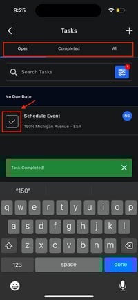 - Tap the checkmark icon (✓) on a task