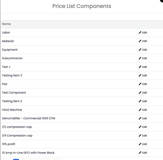 This article explains what Components are in Albi Price Lists. Components define item types such as labor, materials, or equipment and are required when adding items to a Price List.