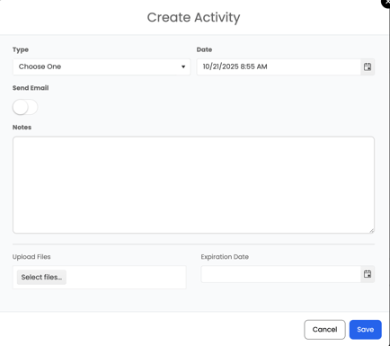 - Type – choose what kind of activity it is (e.g., call, meeting, site visit).