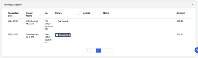 📘Note: Payment History is specifically connected to Albi Pay. If your company is not set up with Albi Pay, this section will appear blank.