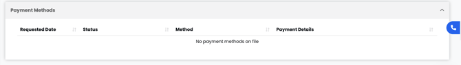 The Payment Methods tab shows the organization’s saved payment options used through Albi Pay. If no methods appear, the company isn’t connected to Albi Pay yet.