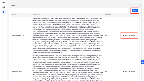 You can add, edit, or disable roles from the top-right corner using the Add (+) button. This helps maintain clear access control and data security across your organization.