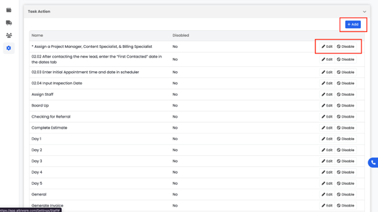 The Task Actions tab allows you to set up predefined actions or tasks that can be assigned to staff members. These help standardize workflows and make assigning responsibilities easier.