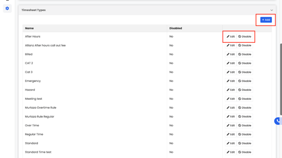 You can add a new timesheet type from the Add (+) button in the top-right corner.