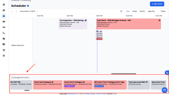 At the bottom of the calendar, you will see the Unassigned Events panel.