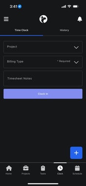 Learn how to clock into a project using the mobile app, including selecting the correct project, choosing a billing type, and adding notes to ensure accurate time tracking and reporting.