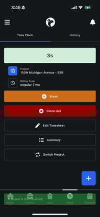 - Once you clock in, time tracking begins immediately.